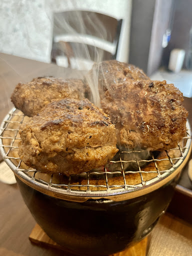 Read more. •黒毛和牛ハンバーグ食べ放題(女性1980円、男性2200円) ・黒毛和牛ハンバーグ食べ放題 ・拘りのご飯食べ放題 ・本日のお出汁食べ放題 ・高級卵"蘭王"食べ放題 ・市場直送野菜の新鮮野菜食べ放題 ・10種類の調味料バー . ハンバーグ好きさんにはたまらん過ぎるお店とご対面♡ 姫路駅から15分ほど歩いたところ。 姫路城すぐにある バーグの名に懸けて姫路城前店さんへ。 お目当てはこの黒毛和牛ハンバーグ食べ放題!!! なんて太っ腹なメニュー! しかもね、ハンバーグだけじゃなく サラダやスープ、ご飯 艶々オレンジな蘭王に薬味たちまで食べ放題◎ なんて嬉しすぎる制度♡ しかもね、このハンバーグ、目の前の七輪で焼きながら頂くスタイル。 熱々ジューシーなハンバーグが楽しめちゃう◎ 予め火が通ったハンバーグが来るから焼けるのを待つ必要はないのも嬉しいポイント! 贅沢に熱々ご飯にのっけて 蘭王も更にオン! なんたる絶景♡ 蘭王をたらーり潰していざ! 表面はカリッと香ばしく、中はめちゃくちゃジューシー♡ めちゃくちゃ美味しい!! 小ぶりながら肉肉っしく食べ応え抜群!! 肉汁も甘くって旨味も抜群! こんなに美味しいハンバーグが好きなだけ食べられるなんて♡ 幸せ。 蘭王がこれまためちゃくちゃ濃厚でまったりしててご飯とハンバーグと合うんよ♡ ご飯泥棒すぎて♡ 10種類以上の薬味もあるから、食べ飽きるなんてこともなく◎ お腹いっぱい大満足!! 姫路駅から少し歩くけど、それでもお腹いっぱいハンバーグ食べたくなったら来る価値あり...