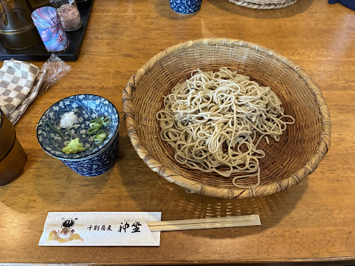 3人とも十割そばの一斤半を注文 そばが来るまでに水と思っていた物を飲むとダシの効いた冷たい蕎麦湯?で美味しくなかったですし、店員からも何の説明もなかったので戸惑いました 普通に水も置いて欲しかったです