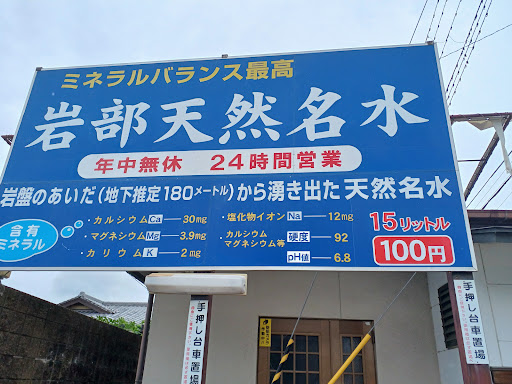 Read more国道312号線を福﨑大橋西交差点から南へ4㎞下り、岩部の交差点の手前に出ている看板に従い左折するとスグにたどり着けます。 駐車場は十分な広さがあり、容器を運ぶ台車まで借りれて、しかもトイレまで設置してくれている親切心。 施設の維持管理を考えると15ℓ100円だなんて、殆どボランティアですよね。 成分分析されていて生のまま安心して飲むことができるようです。 汲ませていただいたお水を持ち帰って飲んでみましたが、癖の無いとても飲みやすい美味しいお水でした。 こちら方面に来ることがあれば必...