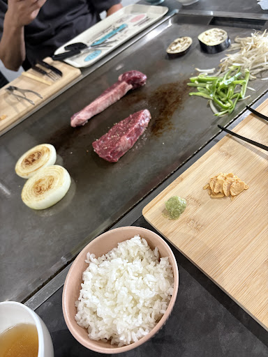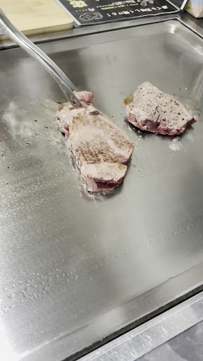 Read moreヒレ・イチボ・牛ラム肉の3種をいただきました。それぞれ違った旨みや柔らかさがあって、とても美味しかったです。 豊富なトッピングで味変しながらいろんな味を楽しめるのも魅力です。個人的にはわさびをたっぷりつけていただくのがおすすめです。 淡路島の玉ねぎステーキも大きくて甘くてびっくりしました!注文必須です。 セルフスタイルだからこその破格プライスなので、普通のステーキ屋さんでは少量しか食べられないお肉を、こちらではたらふく食べられるので嬉しすぎました! また、赤ちゃんを連れて行ったのですが、焼肉屋さんみたいに煙がモクモクになって煙たくなるようなこともなく、子供用の椅子(ベルトあり)も用意してくださるので子連れでも安心してお食事を楽しむことができました! 店内は清潔感があり、スタッフの方々も丁寧にサポートしてくださり、また...
