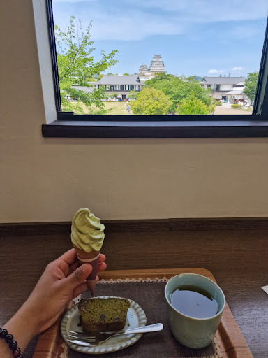 Of all the matcha ice creams I tried throughout my trip in Japan, this one was the best by a long shot! It was really creamy and had an amazing matcha flavour that came through beautifully, which a lot of other places you can barely taste anything. It had more of a texture of a really good italian gelato which was superb. The lady running the store was one of the most kind hearted souls I came across! She makes the icecream herself which you can definitely taste the love she put into it. I had the set which came with a piece of matcha cake which was made by her daughter and some green tea which were both lovely! The view from the first floor overlooking the himeji castle was just a cherry on top. I would highly recommend anyone coming to himeji to make a stop here to get a fix of some of the best matcha icecream...