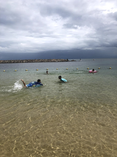 Read more2017年7月15日に家族で行ってきました。見た目は綺麗ですが綺麗なのは仕切ってある手前の浅瀬(30cm)くらいのところのみで仕切ってあるところ以外は汚いです。海のそこはぬめりがあるような感じでドブのような腐った匂いがする場所が多々あります。砂遊びをしようとシャベルで少し掘ると真っ黒な腐った匂いがする泥が出てきました。仕切ってある場所とは別に堤防のちかくに綺麗な場所を見つけたのでシュノーケリングをしてみましたが見た目以上に透明度が悪く1m先が見えないような濁りであまり楽しめませんでした。
