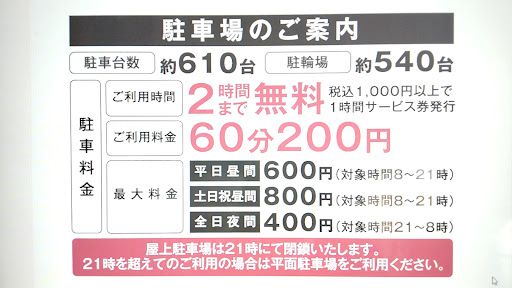 Read moreオープンしましたね 日曜日夕方に行ってみました 思ってたほどの渋滞はなかったです 駐車券みたいなのはありません 2時間までならそのまま何もせず帰れます 夜行くときは屋上が21時で閉まるみたいなので気をつけましょう 1000円以上何か買えば1時間延長できるみたい 飲食しなければ60分ぐらいで全部見れました 私はね。 特筆点は、ペットショップがオープン価格でビッグより安いものがあった そしてポイントカードを作ることで当日から10%オフになる あとは一階の化粧品店で高級香水が試し付けできた マルジェラやジミーチュウ ジョーマローン クロエ等 ジョーマローン最高や たまらん 飲食店は二階に多かった 一麺系の天に通ずがあるやん!後で食べようと店内一周パトロールして戻ってきたらなんとスープ売り切れ完売ふざけんな まだ18:30やぞ 一階のパン屋さんが多分1番混み合ってた。凄い行列作ってた え、西区の人らってパン大好きなん? どこ行ってもパン屋は繁盛しとるね 手前にあるトルタイシー(タルトケーキ屋)さんに美味しそうなのがあったから買って直ぐにパクついた 美味い 店内混み合ってるけど、シンドくなる程...