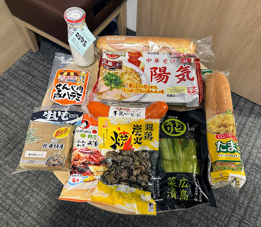 ●福留ハム/本腸ソーセージ¥398 ●福留ハム/せんじ肉豚はらみ¥378 ●ヒバ食品/生芋こんにゃく¥238 ●砂谷牛乳/瓶牛乳¥228 ●アイランド食品/中華そば陽気¥856 ●中元/広島菜漬け¥248 ●おたふく/野菜を食べる ふんわりお好み焼セット¥196 ●タカキベーカリー/ロースハムサンド¥268 ↑ここまでは広島の会社の商品。