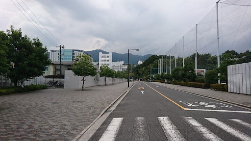 岡の下川下流、三宅の平地から斜面にかけて数々の白い学舎がそびえる五日市キャンパス。この地のほかにも、広島校舎、千代校舎、沼田校舎等を展開されている。