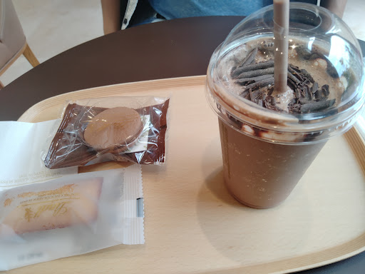 ここの店ではドリンクの販売もあり店内で飲むことも出来る。 チョコレートを売ってるだけに、カフェは少し寒い感じがする。 そしてドリンクはスタバのフラペチーノよりも高いが、味が凝っている。 大きさはスタバのショートサイズ。 トッピングも中身も凝っている。 若干支払いしてから提供までに時間がかかります。...
