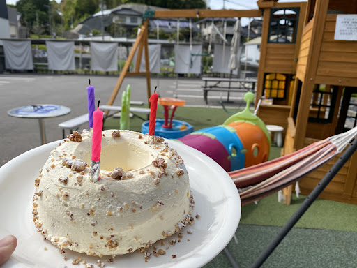 生憎の大雨でしたので、多少しぶきを浴びながらでしたが、屋根があり食事を楽しむことができました😃 駐車場も充実していて、他の家族さんもいましたが、満車になることもなかったです。食材のみの持ち込みでよく、道具がそろっていることや、敷地内に子供がよろこぶブランコや滑り台があり、かなりいい施設です。共同で使用できる建物内に畳の部屋があり、そこにボールプールがあって、1才ちょっとの子供もボール遊びを楽しみました。親も抱っこから解放され、雨も凌げて有り難かった!他家族の子供たちも走り回って遊んでました。 幹線道路からほんの少しですが離れているため車の通りや騒音は全く気になりませんでした😃 また利用したいです。 ☆-1なのは、他家族との隔てが全くないこと。スペースはなんとなく机が離れていて区切ってありますが、屋根はひとつづきなので、マナーの悪い若者達と一緒になる...
