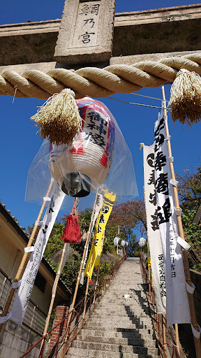 Read more【鯛の宮神社】 お祭り前に参拝しました。奉納幟が建っています。拝殿には大提灯や提灯が掛けられ、太鼓四基が準備され祭事を待つばかりになっています。 神田の寄進がされ、社殿が造営。 文亀年間(1501〜04)福島正則により神田を没収される。元文5年(1740)社殿再興(権現造り) 拝殿・本殿とも向拝が付き銅板葺き。石灯 篭文政10年(1827)正11年戌子九月 狛犬明治40年 拝殿上り階段;天政元卯9月 鳥居;明治40年 。拝殿の事代神社の額が印象的。。。 境内には第六潜水艇、佐久間艇長外14名の慰霊塔があり、「藤田嗣治画伯がスケッチに訪れた。」とか「第43代横綱...