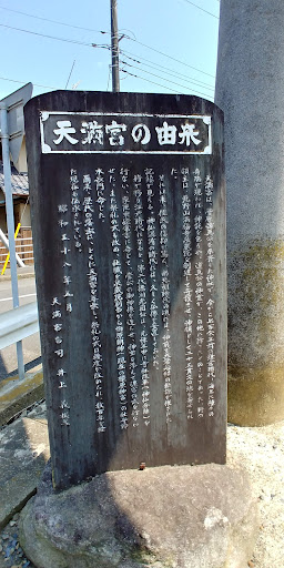 天満宮内の石碑には以下のように記されている。 ・・・・・・・・・・・・・・・・・・・・・ 「天満宮は、菅原道真公を奉斎した神社で、今から七百余年前の鎌倉時代、海上に種々の奇端が現われ、神託を乞うや、道真公の神霊が、この地に降ったとのことであった。時の領主は、北野山満幅寺泉蔵院を創建して守護させ、神領として二十五貫文の地を寄せられた。 それ以来、住民の信仰が篤く、南北朝時代の頃には、神前で大般若経の転読が催された記録が見える。神仏混淆の時代には、久しく仏像を安置しておいた。 時が移り江戸時代になると、第二代徳川光圀公は、元禄年中に寺社改革(神仏分離)を行ない、家臣東條常言に命じて、菅公の御神像を造らせ、神宝を添えて遷宮の式を行なわせた。また祭礼の式も改め、社職を泉蔵院別当から柏原明神(現在の橿原神宮)の社守鈴木長門に命じた。 爾来、歴代の藩主は、とくに天満宮を尊崇し、祭礼の式は幾度か改められ、数百年を経た現在も伝承されている。 昭和五十八年五月 天満宮宮司 井上 義 撰文 ・・・・・・・・・・・・・・・・・・・・・「那珂湊天満宮御祭禮を嗜む」というホームページにはさらに詳しく以下のように紹介されている。