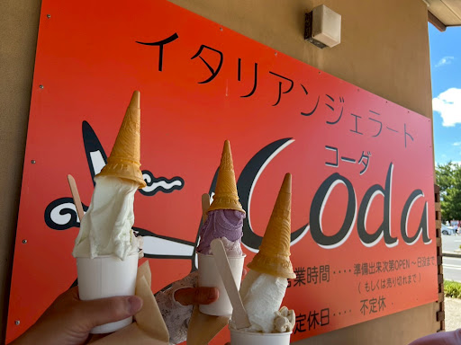 Read more久し振りのCodaジェラート。 長期休業をしていたので、電話で営業確認してからの来店。 妻と娘と3人で、各ダブルを注文しました。 私は、ラムレーズンと青唐辛子。妻が紫芋とイチジク。娘はほうじ茶と大山牛乳ミルク。をいただきました。 いつもながらの盛り!と、甘過ぎない最後まで美味しくいただける絶妙な味! 次回は、『バジル』があったら嬉しいなぁ。と期待して、投稿を締めさせていただきます。