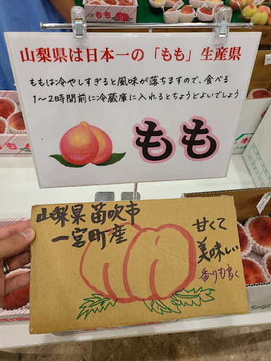 Read more家族に頼まれた桃目的で来店。桃の生産量・栽培面積の日本一は山梨県のよう。その中でも笛吹市が一番であり、さらに細分化すると一宮町・御坂町・春日居町の桃は有名のようです。笛吹市に行けば沢山売っているのかもしれませんが、行く機会がありませんでした。そんな中、いくつかの笛吹市以外の道の駅や直売所に行きましたが、こちらで笛吹(一宮町)の桃を発見。無事家族に良い買い物ができました。他では見つけられなかったので良かったです。ちなみに、「特選」と書いてあるものは無いものと比べ、品種や味は変わらないようですが、見た目と大きさがやや厳選されているようです(傷が少なくやや大きい)。別件ですが、近くにイオン系列とホームセンターがあり便利な場...