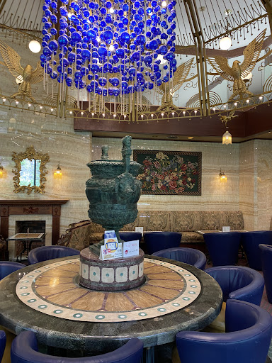内観は、異国情緒溢れる洋館のような装飾で楽しめる。コーヒーラウンジは従業員が見当たらずコーヒーが飲めない。