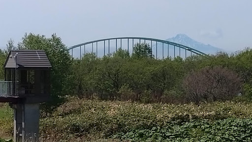 この橋の脇に川に沿って走れる砂利ダートが最高です。天塩川、オロロンラインに並ぶ風力発電を見な...