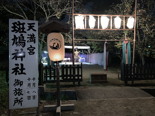 皆様書いておられるように法隆寺の鬼門にある天満宮です。 秋祭りの際には神霊神輿が法隆寺境内の御旅所に移動します。 途中、法隆寺東大門にて並松、西里、東里、五丁町、三町の五大字の太鼓台と提灯台が連座し、順に(その年々で順が決まってます)南大門へと移動し境内の御旅所に神霊神輿が2日間滞在なさいます。 9月の昔宵宮では、斑鳩神社で提灯台のお祓いをしていただきます。東里では子ども会の子どもたち、役員、保護者、太鼓委員会の方々が参加しています。 狛犬さんは拝殿と本殿の間におられ、基本的に近づくことはできません。 大晦日からお正月はテントがはられ、おみくじや熊手などあります。御神酒も振る舞われます。 御朱印、スタンプですが、薄くなってます…😢