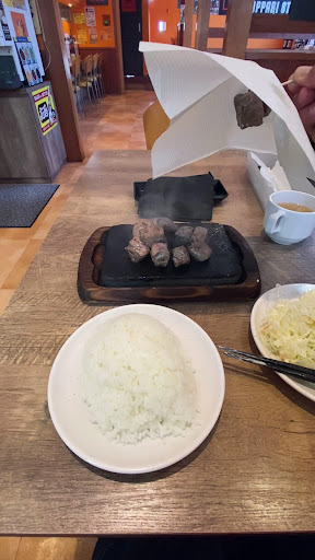 Read moreオープン初日。駐車場6台は3台だけでテント張られ待合所にされていた。テント足が不安定で壊れそうでお客さんが支えていた。炎天下外で待つ感じ。台数多い第2駐車場は店を通り過ぎて曲がったところからじゃないと入れない。オーダーは入口の自販機タッチパネルで済ませる。ワオン使えた。チラシの半額券、もう100名達したといってもらえなかった。券ないなら「もうなくなりました」入口に張り紙しておくべきだろう。オープンしてから2時間ぐらいで行ったのだけど。それだけが「?」だった。トイレは新品できれい。マウスウォッシュとか女性に配慮した用意は感心した。ステーキは最低ライン赤肉の100グラム1000円で、やわらかくファミレスレベルをはるかに超えたおいしさで驚いた。ご飯とキャベツの千切りサラダ食べ放題はすごい。ご飯も白米と黒米で選べる。スープも卵味でちゃんとしていて1000円でお腹いっぱいになる。ファミレスとかの合成肉食べなくていいし、この安さでクオリティはすごい。ミ...