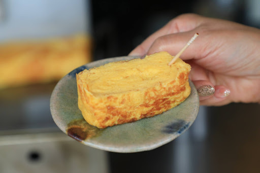 こちらで提供する「玉子焼き」は、ふっくらと厚く焼き上げられた関西風で、お出汁が溢れ出るほどたっぷりと含まれておりジューシーで、空きっ腹に嬉しい甘めの玉子焼き。