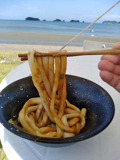 ホテル海の蝶のプライベートビーチフロントにあるクラブハウスです。ホテルの建物から歩いて10分ほどかかり、散歩には丁度いい距離です。着替えができ、バラソルなども貸してくれます。軽食もいただけ、丁度昼だったので、私は名物の「伊勢うどん」、妻は「富士宮焼きそば」をテイクアウトしてベンチでいただきました。浜辺の景色と海風をスパイスに食べるお食事は、この上無い贅沢です。初めて食べた伊勢うどんは、柔らかいのですがモチモチとした弾力があり、かけてある出汁も今までに食べたことのない風味で、...