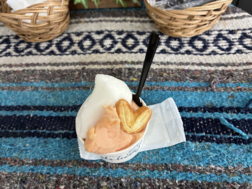 Read more日曜日にインスタを見て伺いましたが、何台も車が入っていてたくさんのお客さんで賑わっていました。その為か少し待ち時間はありましたが、店内にあるアクセサリーを見ていたので楽しめました!ジェラート🍨とっても濃厚で美味しかったです🥰💓こちらのお店のオリジナル、塩黒糖ミルク味にハマってしまいました🍨🌸ピスタチオも美味しかった〜🥺✨次はまた違う味を食べてみたいです🥰