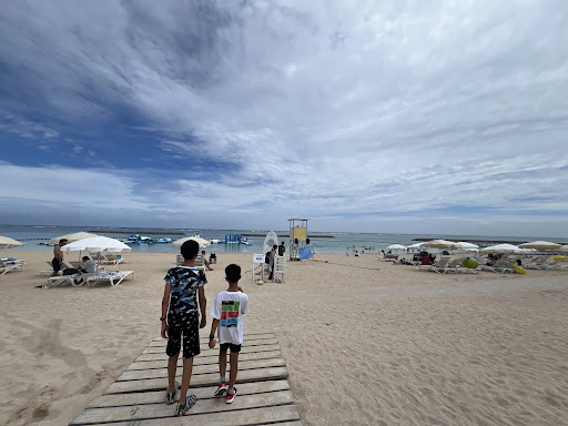A small swimming area on a well maintained and clean beach but not particularly easy to understand how to access as a member of the public. It seems very much like the adjacent ANA hotel is attempting to make this area almost as its own private beach while it’s still actually a public beach. You are allowed to park in the large car park for free but then to walk down to the beach area there are no sign posts showing where it is and the route with the path that you walk has large signs saying no entry. The kanji underneath actually says no entry for cars. However if you follow what appears to be access to the rear of the hotel down this path it leads you round to an area where you can access the swimming area. It’s pleasant enough as an area for a swim, it has jellyfish netting, and in places it’s shallow enough for all ages to have a splash and swim under the eye of the lifeguards but the odd access arrangement and slightly grimy shower area means I’ve knocked off a few stars in comparison to some of the other beaches...