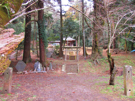 神社の先に道があったので取り敢えず登ってみましたが、手すりや鎖もない急傾斜の上り坂かつ、前日に雨が降ったという悪条件だったので登れたとしてもタダでは済まないだろうと思い半分ほど登ったところで引き返しました。 下る途中に案の定滑りましたが、受け身がうまく行ったので手のひらが汚れるだけで済みました。いつか汚れても良い服装でリベン...