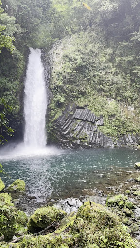 Read more日本の滝100選にも選ばれ、石川さゆりさんの歌う「天城越え」の歌詞にも出てくる有名な滝。『浄蓮の滝』という名称は、かつてこの近くにあった浄蓮寺というお寺が由来しているのだそう。 宿泊したホテルから修善寺まで向かう途中の414号線沿いにあったので、立ち寄って見ました。 駐車場が広く、第3駐車場までありしかも無料。 滝自体は駐車場からは少し下った先にあるため、急勾配の階段を降りていかないとならないのですが、階段には手すりが設置してあるのは有り難いところ。 途中には「滝弁財天様」や「不動明王様」もいらっしゃいました。 高さ25mある溶岩流の端の崖から勢いよく流れ落ちる様は圧巻。滝壺付近は鮮やかなまでの綺麗な青い色で、水の綺麗さを表していると感じました。そしてこの透き通った綺麗な青さは、ビューポイントから見たのとは段違いでしたね。 滝横は河津七滝と同じく、溶岩が冷えて収縮する際に出来る柱状の岩『柱状節理』になっていて、これがまた滝と美しい景観を作り出していて、流れ落ちる滝の水音を聞きながら、心洗われる風景を楽しめました。 滝の下流には、この滝の綺麗な湧き水を利用したわさび沢が広がり、遊歩道から見ることも出来ます。階段途中では生わさびも販売していました。観光センターにも生わさびはもちろん、わさびジェラートやわさび加工品も販売しているようでした。 階段はちょっときついですが、日本の滝100選に選ばれただけある美しい滝が無料で見ることが出来るので、近くに来た際は是非訪れて...