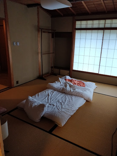 Read moreWe travelled as part of a group on a gastronomic tour in Japan and occupied several rooms with single sex occupation.||||Initial greeting was very friendly and your shoes are taken away on entry - you get a "luggage tag" for them which you need to keep safe!||||Our rooms were for three people each with plenty of space, many tatami mats with room for futons laid down at dinner by the staff.||||There are separate loos, washing area and a small private onsen which I found extremely hot.||||The main onsen is traditionally single sex but there is only one pool in each area so not possible to experience a range of temperatures.||||Food is a traditional Kaiseki meal, not the best but not the worst we have had and the staff work hard to please. Breakfast is also traditional Japanese so no catering for Western tastes.||||Most guests are from Japan so generally arrive by car, we had a small fleet of texis from Izu Nagaoka station.||||The onsen experience is a personal taste (not really to mine) but the property itself is large, beautifully laid out and...