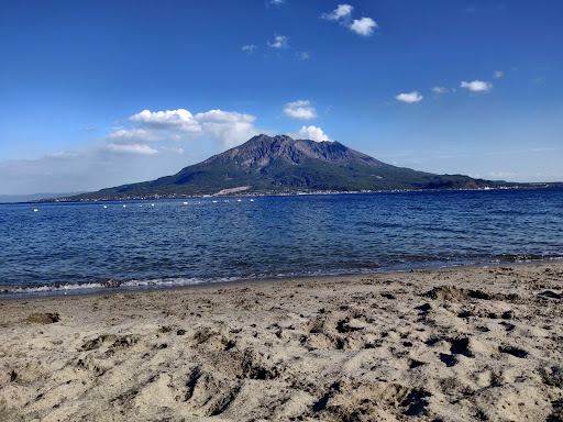 A small but charming beach with stunning views. When I visited, a couple was taking their wedding photos with the majestic Sakurajima volcano as the backdrop—truly a picturesque scene. There’s also a jet ski available, which I assume operates during the summer months.