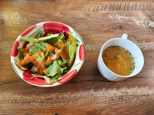 Read moreランチで立ち寄りました。 ランチだと週替わりのパスタかクリームパスタの2択だったので妻とそれぞれを選択。 この時は週替わりのパスタがホタテときのこの和風パスタで私は大盛りを注文しました。 サラダは新鮮でボリュームがあってビネガーの効いたドレッシングが食欲をそそらせます。スープは歯応えの違う食材がいい具合に混ざり合って飽きずに頂けました。 パスタもホタテやきのこにゆずや複雑で旨みの効いた和風の出汁が効いたソースでとても美味しかったです。 店内にはクラシックな車が置いてあり、オシャレな雰囲気でした。 テラスにも席があったので天気のいい日はテラスでビールを飲むのも楽しそうです。 ビールの種類も豊富なので改めて夜にビールを飲みに行きたいと思いました。個人的に好きなIPAも数種類あってセレクトにも信頼がおける内容でした。