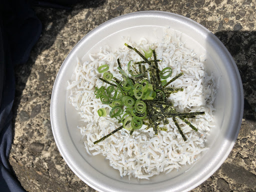 せっかく和歌山に来たからには何か美味しい海産物を、と思い立ちGoogleMAPにて「直売所」と検索したところ、こちらのお店が出てきました。口コミのしらす丼が気になり伺いました。 お店の人から今日は特にしらすが美味しいよ、と説明してくださり、しらす丼(コロナのためテイクアウトのみ)と釜揚げしらす(1000円分)を購入しました。 持ち帰りのしらすはパック小(約500円分)と中(1200円分)が選べます。お店の人に○円分と言えばそれにあわせて詰めてくれます。 早速海をバックにしらす丼を食べましたが、ロケーションだけではないほどよい塩味と釜揚げしらす特有のふわふわ感が口の中に溢れました。 ここまでしらすを美味しいと思ったことはありませんでした。感動の一言。 ちりめんもあるとの話を聞いていたので、店に戻り追加で買ってしまいました。