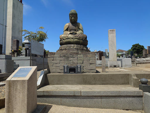 それもそのはず。この大仏を建立したのは地元の豪商であり、先祖の供養を目的として建立した、いわば「ザ・プライベート大仏」。 世の多くの大仏は寺院に鎮座し、お坊さんがお経を上げたりする対象となっているのに対し、鎌ヶ谷大仏はお坊さんが常駐していないであろう墓地に建立していることが、宗教的なバックグラウンドを感じさせないのでしょう。 仏像特有の荘厳さや威圧感を持たない「気さく」な雰囲気を出しているように思われます。