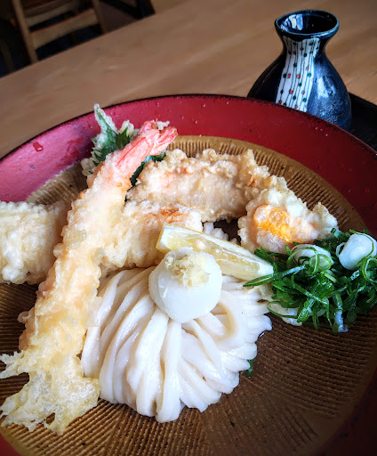 The udon noodles here are very fresh tasting and good. The texture is great, soft but chewy, and is a 5. I had the Premium Tempura Cold Udon. The soup was refreshing with a twist of lemon and added dashes of the niboshi (dried fish) infused vinegar, upping the Umami and adding a cooling, refreshing taste on a hot humid afternoon. Soup, maybe in-between a 4 and 4.5. The Tempura (single pieces of shrimp, chicken, chikuwa and a soft poached egg) were served hot and crispy. For the non-set menus you can order less, regular, x1.5 or x2 the quantity of udon noodles. A nice touch. The regular volume is enough for most, 2 for the super appetites, 1.5 for the hungry. Overall very satisfying. One of the waitresses had a wonderful smile and personality. Will go back when...