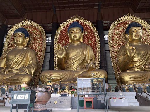 Read more拝観料は高めですが(大人800円、JAFカードで720円、小中高生無料)ほぼ貸切で15メートルを超える大仏三体の前を参拝。その横の5重の塔もほぼ貸切。平日ということもありましたが、もっと認知度があがれば多くの方が訪れる場所に、、、それはそれで貸切感がなくなるので微妙なとこですが、これは必見の場所です。 入り口の仁王像もビッグで!異世界に迷い込んだ感覚になりま...