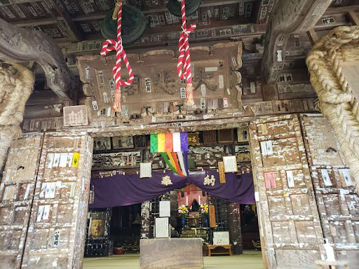 Read more駐車場は脇道に入ったところに、社務所のようなスペースがあり、そちらにあります。 急な階段をのぼると立派な山門があり、その先に大草鞋が飾られている建物が本殿です。 建物内には、古い写真や山形独特の風習「ムサカリ」と思しきものがたくさんあり、また、参道の脇道には地蔵や石碑もたくさんあり、よくよくみてみると、文化的価値も高いと思い、面白味も感じる場所です。