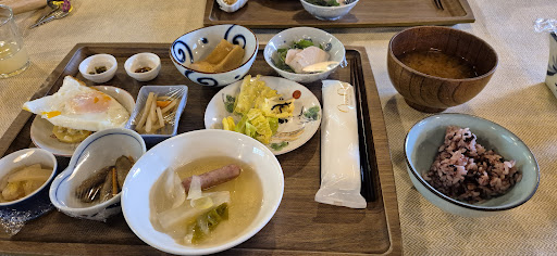 Read moreDon’t let the non-descript building fool you. Most Hokkaido small towns in the summer show their age. This hotel is well known as one of the best in the area and the food served is excellent.||Upon walking into the lobby, faint smoke smells in a dark lobby filled with antiques with groups of couches spread out around the area. The proprietress summoned another lady who could speak to us in Mandarin and we got by with our passable language skills.||After passport formalities were observed, we were helped with our luggage to our room. The hotel has plenty of antiques and older stuff. It’s like stepping into a time warp.||Our room was on the other end of the building, above the onsen. Just after the room door, there’s a large Japanese alcove to put on/take off shoes. Beyond a sliding door, is a large tatami style sitting room and further to the right was the bedroom with two single beds on a platform. ||The toilet is on the right of the beds, housed at the end of a long corridor. The corridor has a long table and the sink sits in the middle of it. One end has tea/coffee making facilities, while the other end can be used as a make up counter, complete with a high stool. A toilet with motion detector lights is at the end of the corridor. It has all the usual Japanese toilet functions.||There are no shower facilities. This homely 17 Room Onsen-Inn has an onsen downstairs and you are expected to use that to bathe. The staff swap the blue and red Noren (cloth drapes, half-covering the doors) to the bath house so that guests of both sexes can enjoy both facilities. The larger bath house has glass windows that are magical in the evenings. ||Our beds were just right. The sheets seemed to have a pretty high thread count. My wife and I shared a side table with a lamp and old style phone. No electrical points to charge mobile devices to be found around the bed platform. The nearest is either beside the TV or the living room.||There’s a flat screen TV on the partition wall in front of the beds. I expect that it only showed local Japanese TV. Bring your own entertainment. ||There’s a safe in the living room with a key; it’s not electronic. WiFi can be received in the room.||The living room has a traditional clothes rack for hanging ones jackets and the Yukuta Jacket. There’s another rack in the bedroom for towels and clothes. Wall pegs are mounted on the partition wall between the bed and toilet corridor.||Our room had a shelf with a selection of 6-7 different types of pillows, to customize to your sleeping style. ||The staff set up a tatami style bed for my son in the living room.||In the key set, you will find an extra key for access to a room with all sorts of “spares”. Clothes drying racks, sketch pads with pencils, more towels, board games, tripods for cameras, and even chargers for devices.||If you’re in need of a gym, you’ve come to the wrong place. There is a park nearby if you need to train. However, summer time means more flies or mozzies. Insect repellent is advisable.||Food is home made and delicious. Dinner is laid out in front of you with a couple of surprise dishes brought to the table later; We had local vegetable tempura and seared deer meat. ||Breakfast is buffet style and available from 7.30-9.00am. Expect Japanese style with hot and cold dishes, rice, soup. Some fruits on the side, and small cans of Sapporo beer if it pleases you. Help yourself also to Machine coffee.||All together a great stay at this family run onsen. It’s not modern but it’s homely atmosphere and cheerful, friendly staff are winners in our book. Don’t let the lack of in room shower put you off. With 17 rooms only, the onsen does not...