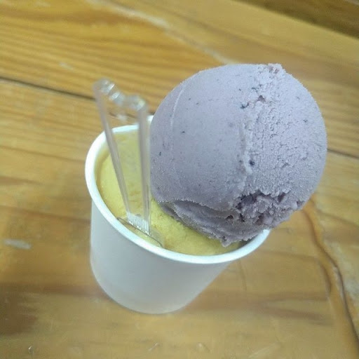 「 道の駅 温泉の里神山 」さんの「ダブルアイス〜神山町産キャラメルパンプキンと神山町産ブルーベリー (480円) 」✨ ※メニューの内容が変更されている可能性がございます