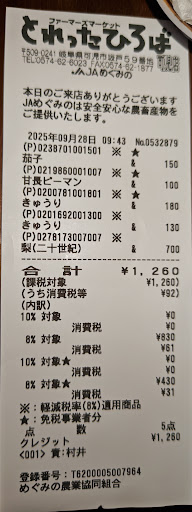 Read moreレシートの日付に、幸水を購入しています 二十世紀梨は、袋詰めで、幸水は、白い保護剤とプラスチックケース入りでした。 幸水は、2個入りですが、完全に腐っていました。 二十世紀もブヨブヨで、食べた感じも、ギリギリお腹壊さない程度でした。 売り場は、豊水が並ぶ列の1番奥に、少しだけ幸水ありましたり。 その手前の置き場に、あったのが、これまた数袋だけ、二十世紀がありました。 切ったのは、購入した日の翌日と翌々日です。 愛知から購入に出かけ、保冷剤たっぷりで保管して車で運んでます。 帰宅後、すぐに冷蔵庫に入れてます。 幸水をなぜ打ち込まなかったのか、商品管理をしていないのか、不満だけです。 購入後3日以内しか返品受付してないのもレジで見ていたので、遠くから信じて購入した我が家は、どうすることも出来ないで、電話もしてません。 二度と行かないかな。 車も人も多かったけど、岐阜の商品より、他県の商品が多く感じる面もありました。 車椅子♿マークの駐車場分かりにくいです。 不満の残る買い物でした。 箇条書きで...