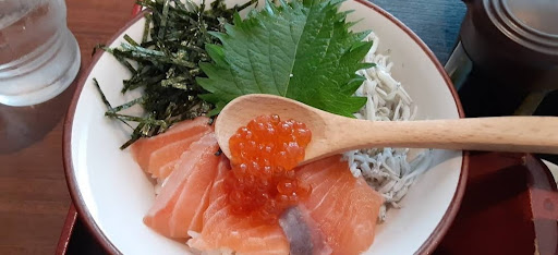 しらす丼のしらすの量もすごい ふわふわのしらすに濃厚な黄身が絡んで めちゃうまでした。
