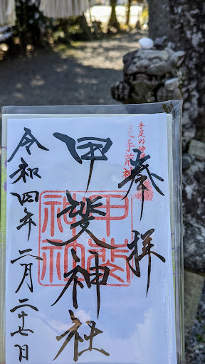 Read more御朱印をいただきました。2022年2月27日時点では、授与所内に書置きが用意されているとの貼り紙がありました。参拝時には御朱印入れのケースが空になっていたのですが、ちょうど神社の方(宮司さんかな?)が声を掛けて下さったので御朱印が品切れになっていて…とお伝えすると、快く社務所兼自宅から持ってきてくださいました。Googleでは足手荒神(甲斐神社)と出てきますが、足手荒神と甲斐神社の鳥居が対になるようにそれぞれ立っています。住宅街にある小ぢんまりした神社...