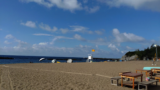 公衆トイレに水シャワーが設置されていましたが外から丸見えな位置なので着替えることが出来ずちょい不便だなと思いましたが、なんと海の家が個室温水シャワーを無料開放してくださっていました。混み合うので3分の制限付きでしたが男子供には十分な時間。本当にありがたかったです。お礼を兼ねてなにか食べようと思ったのですがバーだったので子供に適したものがなく見送らせていただきましたが、この場を借りて感謝申し上げます。 また8月15日までの短期ではありますがライフセーバーも常駐されているのも安心感がありました。