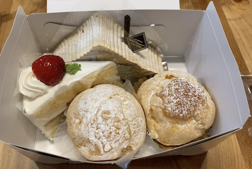 Read moreまだ2回ほどしか行っていませんが、とても良いお店です。本当に色んな人におすすめしてます! まず、ケーキが大きい。他の店だと、小さいサイズで500円を超えるなんてザラですが、ここは馬鹿でかいのに、500円未満がほとんどだと思います。 日によってケーキの種類が変わるんですかね?そこはわからないですけど、初回の時とショーケースの中が違いました! 今日は特大!と書いてあるケーキもありますので、日によって違うものが楽しめます。 ケーキ以外の焼き菓子も置いてあります。 私は一人暮らしなので、少しずつしか買えませんが、毎度サービスがとても良い! ケーキ屋さんあるあるですが、商品を選んでる時店員さんが待ってる感が嫌なのですが、ここは店員さんが基本カーテンの奥で作業していらっしゃるので、じっくり商品を選ぶことができます。 本当におすすめです。一度行ってみていただきたいで...