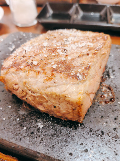 お肉はちょっとボソッとするとこもありますが 全然オッケイ!! 溶岩からつくられている熱々の石がどんどんお肉焼いていくので、 ある程度のスピードで食べないと焦げる!笑