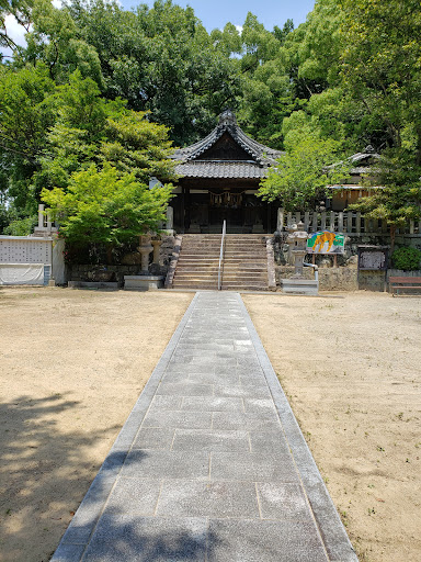 Read more野崎駅から徒歩20分ぐらい。 付近に駐車場はありませんでした。道路の行き止まりになるので、駐車しても迷惑にならない?!でも、Uターンも出来ないから大変かwww 駅前か町中で止めて、少し歩く方が賢明かと。 住宅街の急坂を登っていくと、ありました。飯盛山登山道の1つ=三好道の入口という案内板がありました。 こじんまりした境内でしたが、急坂を登ったお陰で、見晴らしの良い景色にありつけましたwww このあと、三好道を辿って、飯盛山城趾まで登りましたが、ずっ〜〜と急坂でした。飯盛山城には1番近いらしいですが、その分、一気に山も駆け上がるような坂道・・・体力あれば大したことないのかな?!自分には、なかなかハードでした。2023/06/03・48歳・運動不...