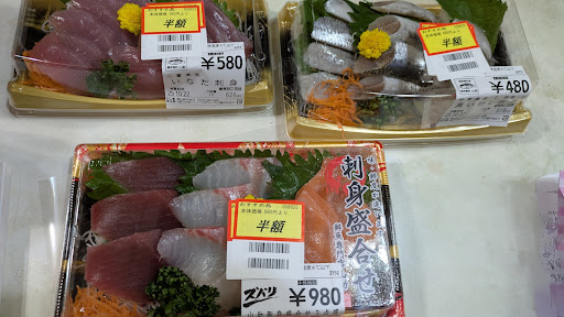 Read more今日で2回、来店しました 初日に¥1000のうなぎ買ったけど不味かった。値段の割りに細くて小さいし皮が硬くてゴム見たい。鮮魚のお寿司も鮮度悪くて高いです。マグロの色を変わってて買う気になりません。後、1番左側のレジに居た応援者の眼鏡掛けた女性感じ悪いです。いらっしゃいませありがとうございましたも言わないです。特別安く無いかなぁ。安いだけあってそれなりの商品です。安いのはオープン何日かだけですよ。菓子パンも高いですね。他のスーパーの他が安いですね。お惣菜安いですね。品質悪い、接客悪いその内、お客居なくなりますね。オープンしたばかりで平日は暇そうでレジの店員も暇そうにしてました。 ...