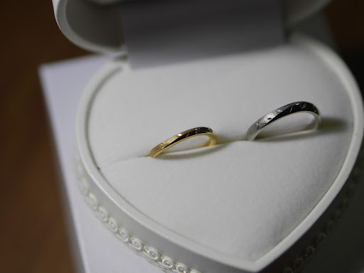 結婚指輪を製作していただきました。 きっかけは職場のオーナーがつけている指輪が素敵だったので話かけたところ、こちらのお店で製作していただいたものだと教えてもらったので、行ってみることに。
