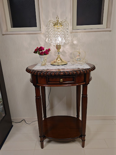 Read more本日初めて伺いました(^^)リビングダイニングテーブルセットを見に行きましたが我が家にあうものは今回は見つかりませんでしたが、それ以外のアンティーク家具がいろいろとあり、見てまわるだけで楽しめました。マホガニーを使用した家具と素敵なランプに一目惚れして購入しました。絵や小物もたくさんあり、目移りしてしまいました。...