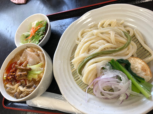 夫は限定の辛肉汁うどん並盛,私は肉汁うどん...