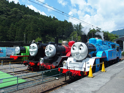 Read more『接岨峡温泉』駅からあぷとライントロッコ列車に乗り、この千頭駅で下車しました。そして大井川鐵道のSL蒸気機関車に乗り込みました。千頭駅には『機関車トーマス』の列車が3台ありました。また、名物『川根茶』を買いました👍️初めて蒸気機関車に乗りました。トンネルに入る度に窓から“蒸気”が入ってきました。小生が小学生低学年のときに両親に買ってもらった蒸気機関車のおもちゃを走らせたときに発する“匂い”と一緒でした😁妻は山口線沿いに生まれ育ち、幼稚園のときに何度か蒸気機関車に乗っていたため、『こんなものです、蒸気機関車は。』としれーとしていました。★★★★なのは大雨だったからで、晴天であ...