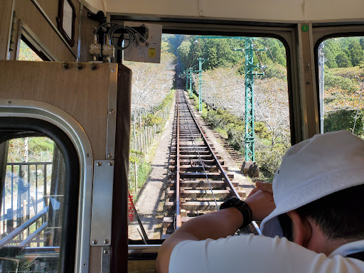 It was an interesting cable car ride - the cable car was quite simple and there was no seat belt of thing - though the ground was just in just a meter height. The view was amazing - with lots of flowers on both sides. If you walk from the parking lot from the top of the mountain, you have to take the hiking rail down next to the parking lot (and the temple) which would take you 5-10 mins to reach the station...