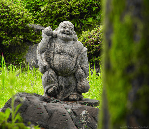 Statue at Flower Park Statue of Budai, a semi-historical Chinese monk from the 10th century who is always depicted as laughing with a protruding pot belly. Budai is said to be a harbinger of abundance and good health in Chinese Buddhism. In Japanese Zen Buddhism, however, Budai is referred to as Hotei and seems to be referred to as a God of Peace. Regardless, one can't help smile at such a happy looking character. Suntastic Yellow Best guess is that these are “Suntastic Yellow” sunflowers due to the short height and dark center. Firecracker Possibly a "Firecracker" sunflower (Helianthus annuus) or "Ring of Fire" sunflower, which goes by the same genus and species. The Firecracker name might be British English whereas the "Ring of Fire" name might be American English. A kind of green house with a light show, crafts corners, cafe, and large fish aquarium. Higiri-Mon Gate An historical piece of architecture, Higiri-Mon Gate was once a part of the Kyoto Imperial Palace until the 17th century before the shogun moved the emperor to Edo Castle in modern-day Tokyo. The well-preserved gate was reassembled for use in the Hana-Biyori Flower Park located in western Tokyo. Water Bowl with Flower Petals At the entrance to the flower park, there were a few large ceramic bowls filled with water that had cut sunflowers accenting various shades of white, green, blue, and violet...
