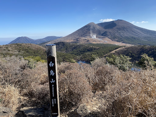 白鳥山(1363m)までは、エコミュージアムセンター前の駐車場をスタートして1時間弱なので初心者向きです。ただし普段歩き慣れてない人には坂道はしんどいのかも。スニーカーでは厳しいので一応登山靴が必要です。 山頂からは、韓国岳、甑岳だけでなく、夷守岳、栗野岳、桜島も綺麗に見えました。